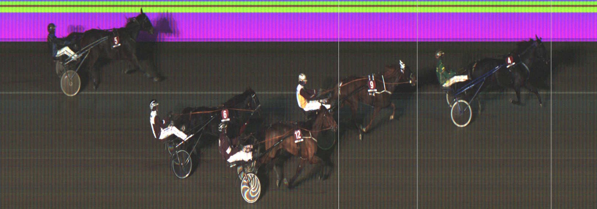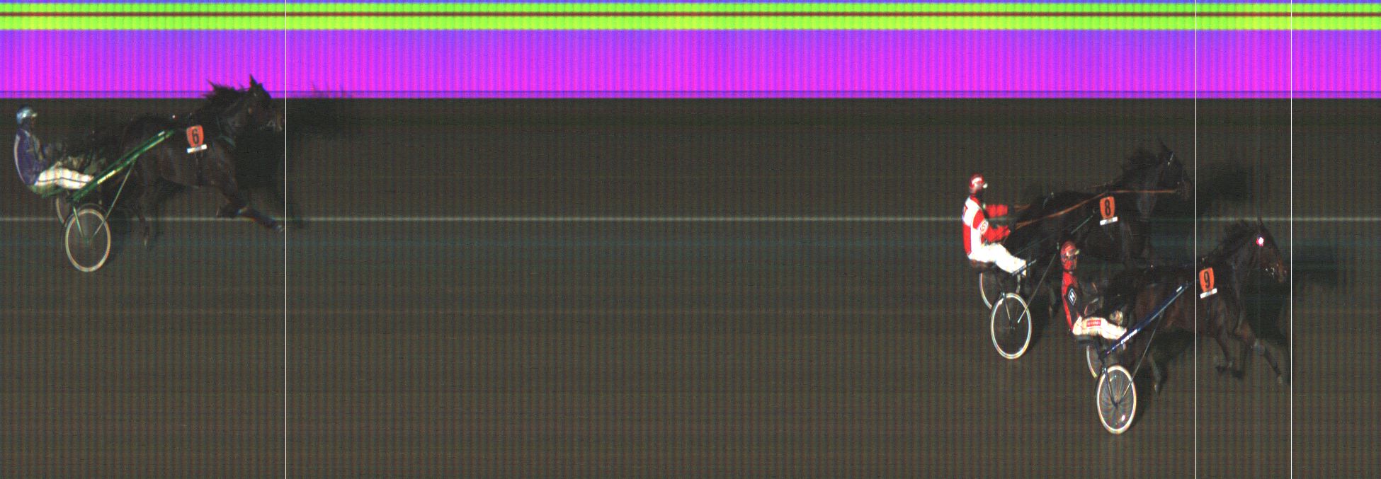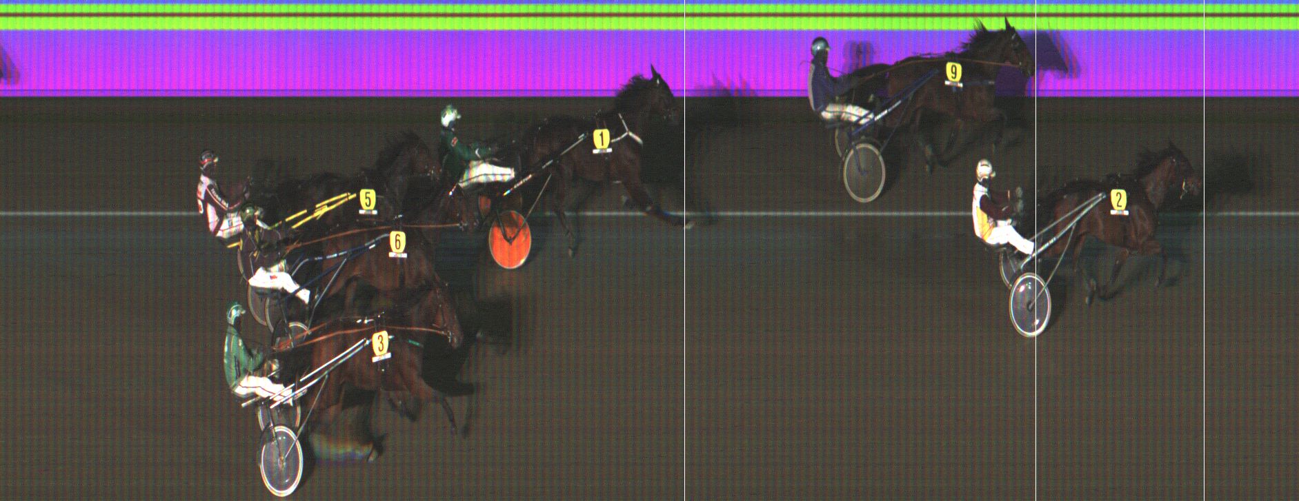 JUBILEE HOSS: Laukkasi keulasta 1. kurvin alussa. Jäi kuuden hevosen lähdössä jonon jumboksi. Eteni viidenneksi 800 jäljellä ja neljänneksi harvassa porukassa 350 jäljellä. Piti asemansa perille.