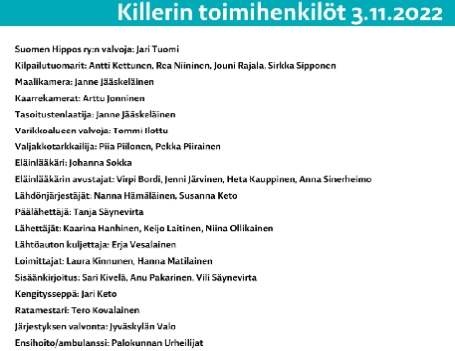 Killerin marraskuu on huippu-urheilun täyteinen, sillä O.K. Auto Tammaderby ja kolmen kategorian Finntack & Yara Kasvattajakruunut ovat 15 000 euron ykköspalkinnolla ajettavia suurkilpailuita. Näiden huippukisojen karsintalähdöt ravataan torstaina 3.11. ja finaalit puolestaan Metsäravien yhteydessä lauantaina 12.11.