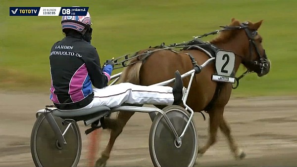 HETVIINA: Nousi 1. kurvin alussa johtavan takaa toiselle ja eteni keulaan 2300 jäljellä. Jatkoi 2. sisällä 2100 jäljellä. Nousi maalisuoralle toiselle ja puristi varmaan voittoon.