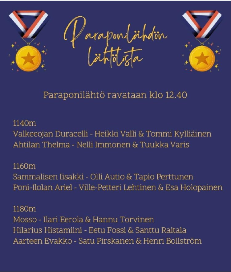 Poniderbylähdöt klo 12:00 ja 12:20. Paraponilähtö klo 12:40. Ponilähtöjen videotallennus tässä!