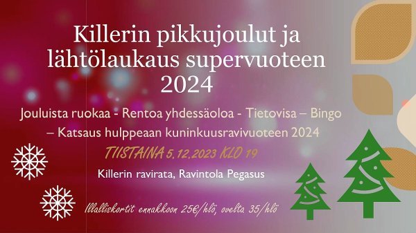 Killerin pikkujoulut - lähtölaukaus supervuoteen 2024
