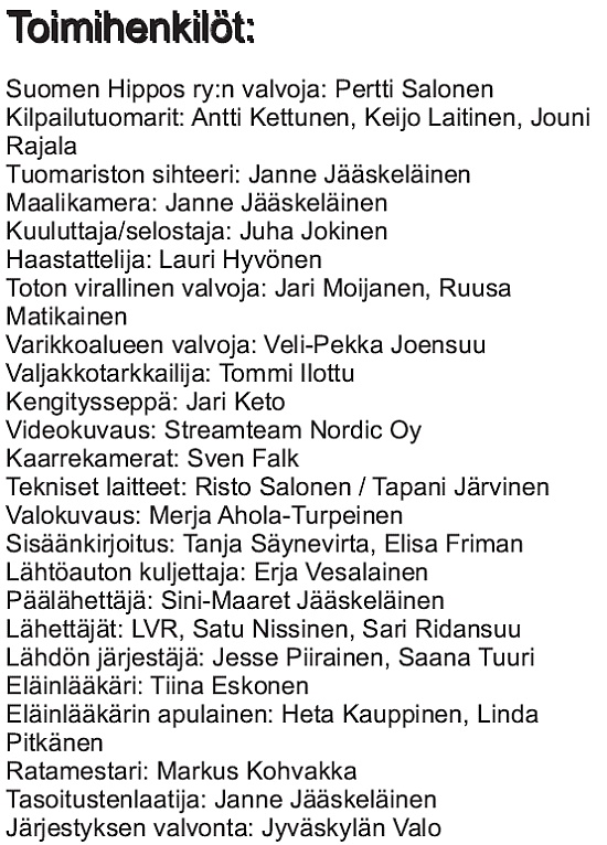 HAITEK: Nousi 3. ulkoa selässä kolmannelle 900 jäljellä, pudotti 800 jäljellä uuteen selkää 3. ulos. Pääsi pian 2. ulos, mistä seurasi totoon.