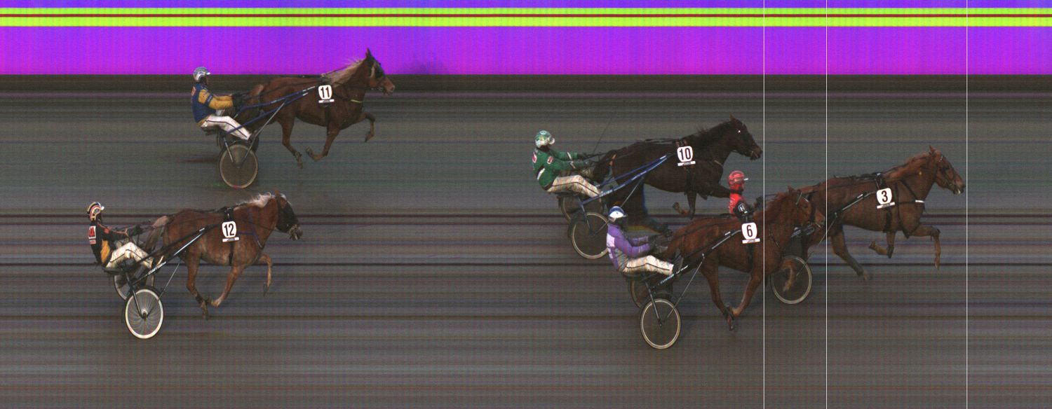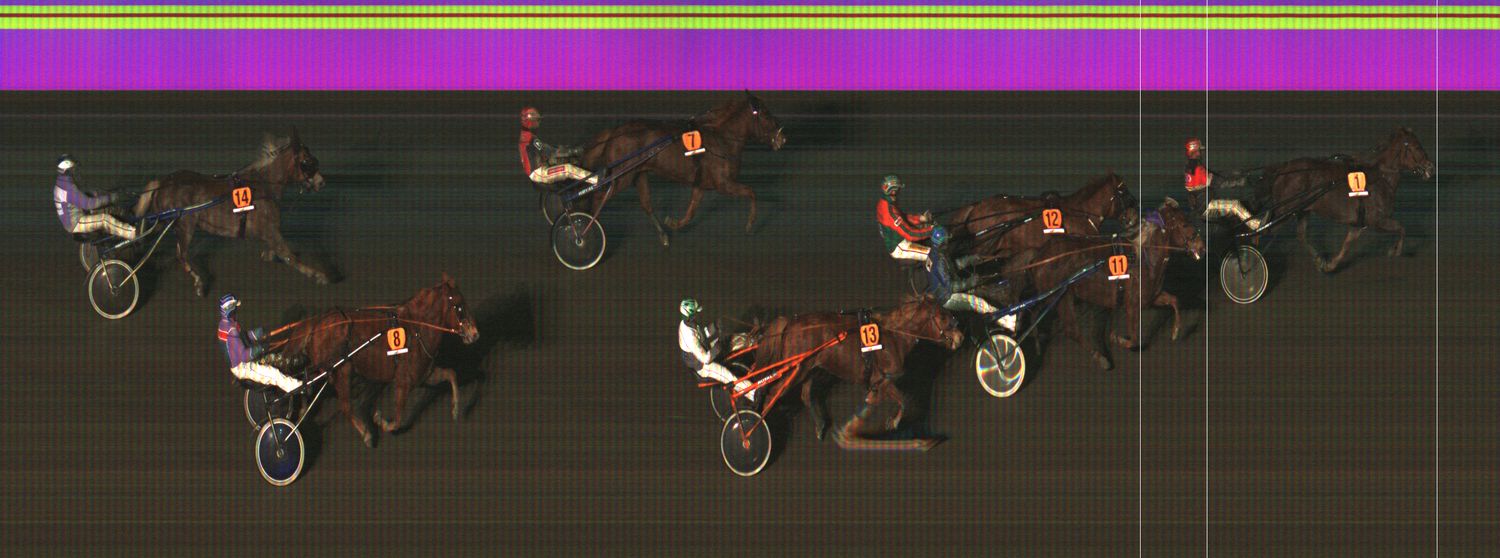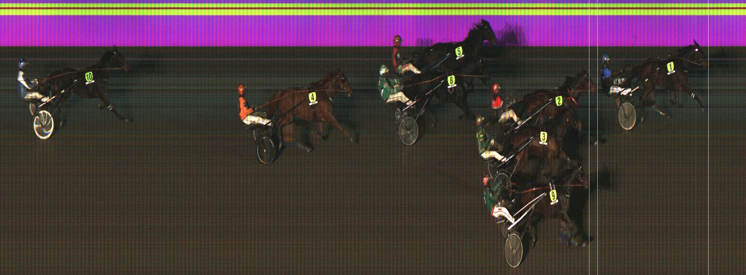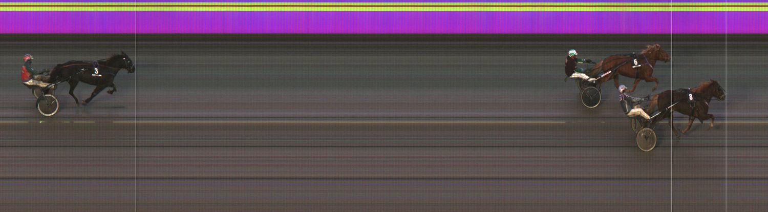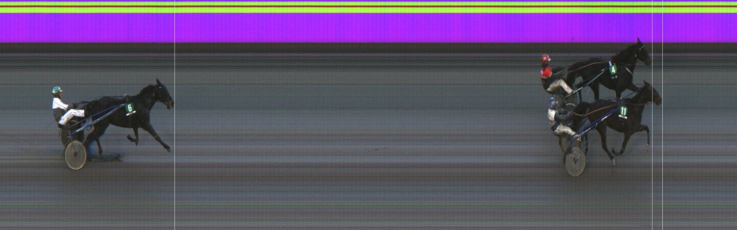 VENNELMON VARMA: Laukkasi lähtösuoralla pariin kertaan kuvien ulkopuolella jääden taustalle. Laukkasi kolmannen kerran 1800 ennen maalia. Kohosi viim. takasuoralla kaukaa takaa selissä kolmannelle radalle. Käänsi maalisuoralle ulkoradoille ja kiri vahvasti neljänneksi. Tuli kuitenkin hylätyksi liioista laukoista.