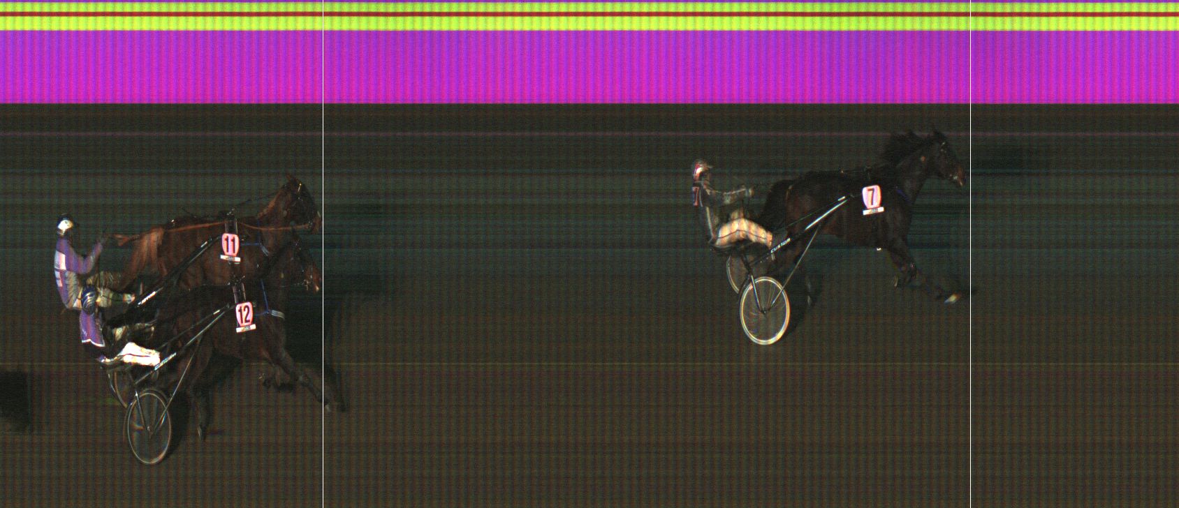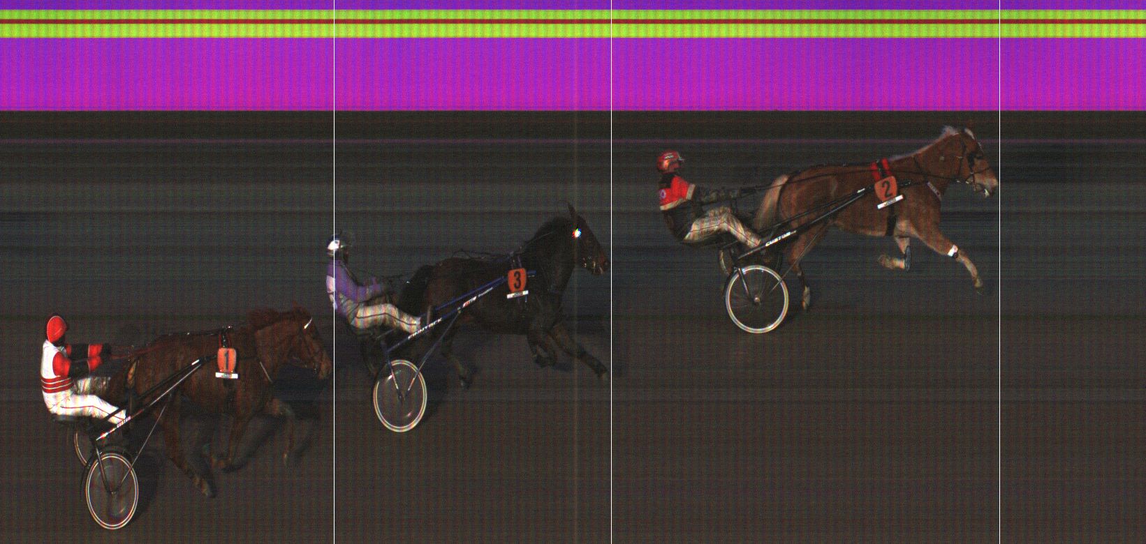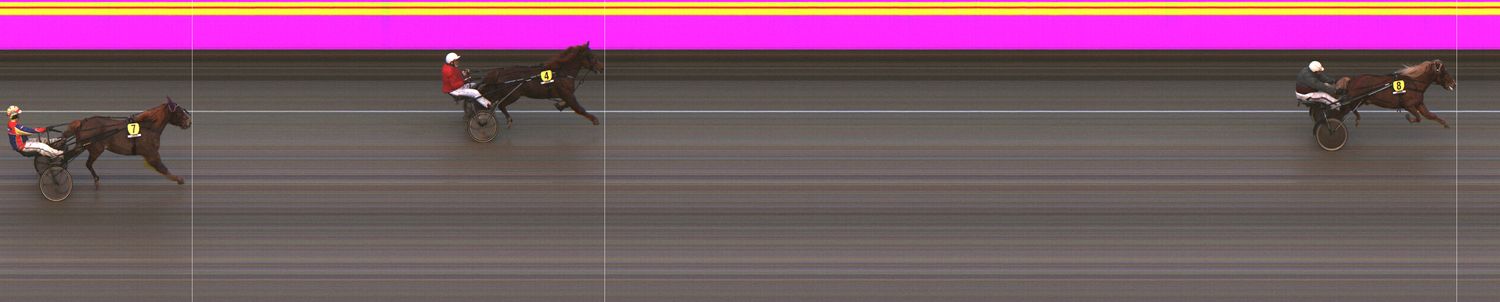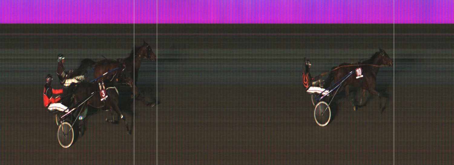 VENNELMON VARMA: Laukkasi lähtösuoralla pariin kertaan kuvien ulkopuolella jääden taustalle. Laukkasi kolmannen kerran 1800 ennen maalia. Kohosi viim. takasuoralla kaukaa takaa selissä kolmannelle radalle. Käänsi maalisuoralle ulkoradoille ja kiri vahvasti neljänneksi. Tuli kuitenkin hylätyksi liioista laukoista.