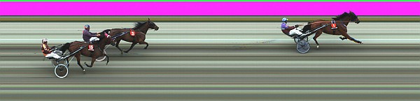 ANGELIINA: Laukkasi 1. kurvin alussa keskipareissa, eteni kolmatta rataa ja haki keulat 1. takasuoran lopussa. Kamppaili maalisuoralla harvassa porukassa toiseksi.