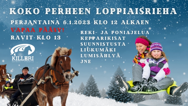 Vietä loppiaispäivä vauhdikkaasti Killerillä! Perjantaina 6.1. klo 12 alkaa koko perheen tapahtuma, johon on vapaa pääsy. Luvassa on talvisia aktiviteetteja kaikenikäisille ja samalla seurataan mielenkiintoisia raveja, jotka alkavat klo 13.