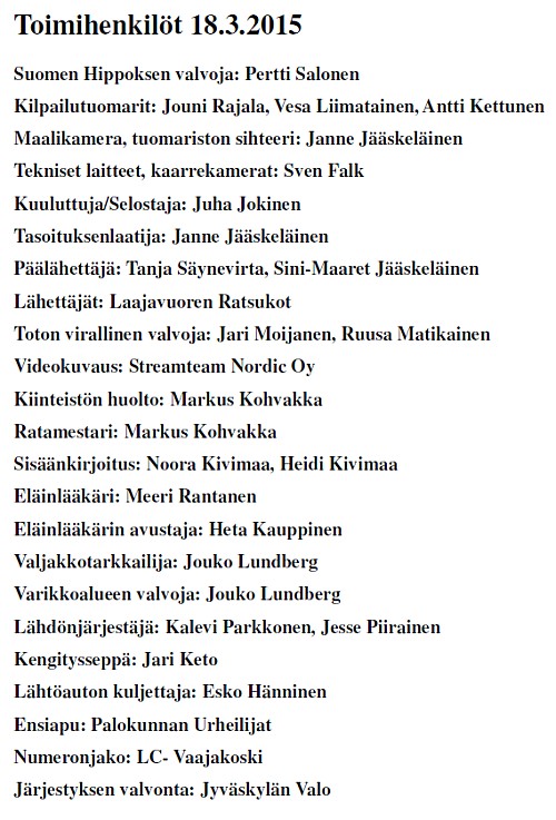 Lähtölistat, poisjäännit ja ohjastajanvaihdokset