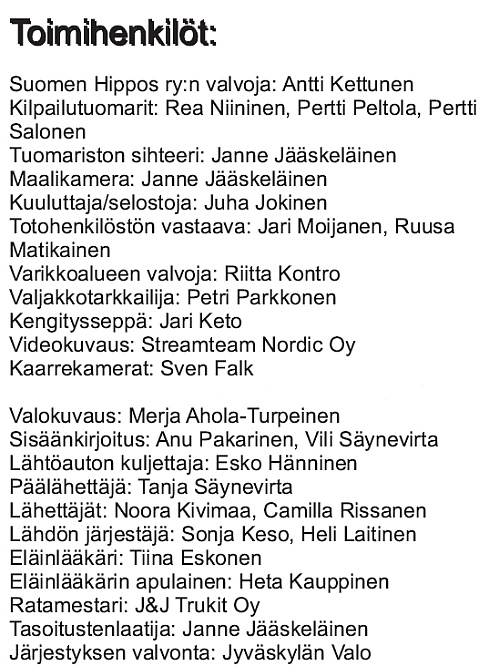 Mm.: Vapperi -lähtö, Viesker Cup -karsinta, Hankasalmen Heinäravit, Mäntän Ravit, Jämsän Kesäravit ja Hevosklinikka Laukaa -lähdöt.