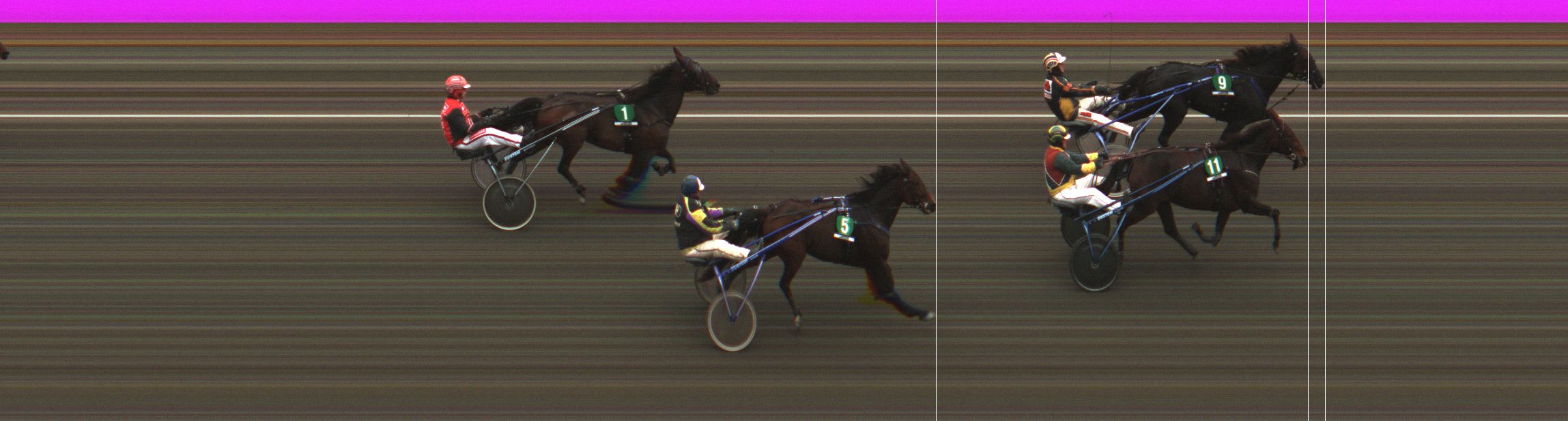 ALLISON BEYONCE: Puolsi 2. ulkoa kolmannelle 1300 jäljellä, palasi pian toisen radan jonoon. Mutkitteli jälleen 3. kurvissa ja antoi pahoin periksi. Päätyi keskeyttämään.