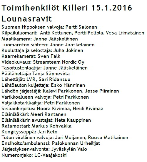 LAS ROBBIE: Jäi viim. takasuoran lopussa 3. ulkoa pääjoukon hännille vetämättömässä selässä, käänsi loppukurvin alkaessa kiriin ulkoradoille ja lopetti kiihtyvässä vauhdissa hyvin toiseksi.
