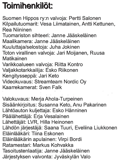 COLD LUCKY GIRL: Luovutti keulat 1. takasuoran alussa, menetti loppukurvin alussa väsyvän takana asemiaan. Nousi loppukurvin puolivälissä toiselle ja tuli harvassa porukassa tasaisesti.