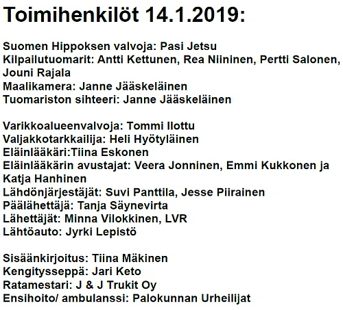 Koelähtö klo 17.10. Toimihenkilöt tässä.