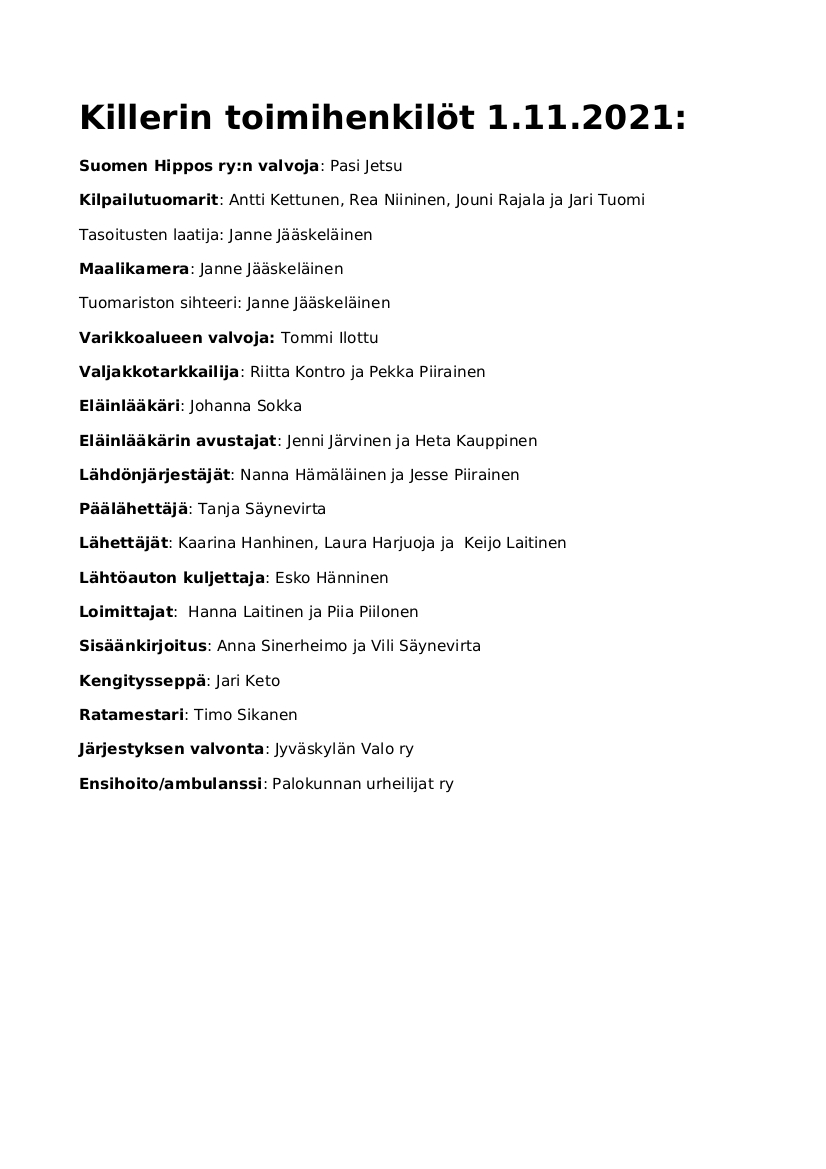 Huom. Itäisen parkkipaikan remontin takia on tänään kulku Killerin tallialueelle vain "Keuruun puoleisesta" liittymästä (Raviraitti), katso kuvaa! Ei siis vaikutusta tav. yleisölle, ainoastaan tallialueen kulkijoille!