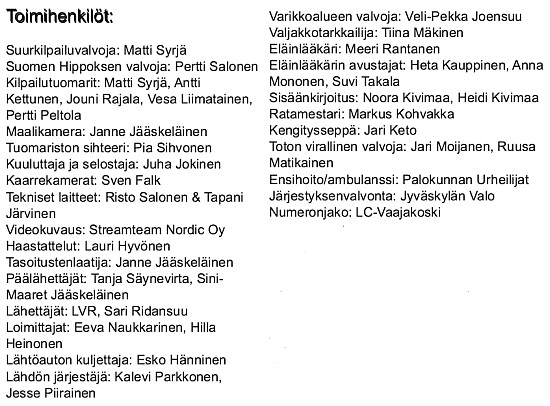 Ponilähtö klo 13.45. 1. totolähtö klo 14.18. Toimihenkilöt tässä.