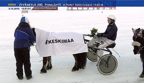 LUMI-AATOS: Laukkasi johtavan rinnalta 1. kurvin alussa jääden hännille. Puristi harvenneesta porukasta maalisuoralla viim. rahoille osin vastustajan laukan avustamana.