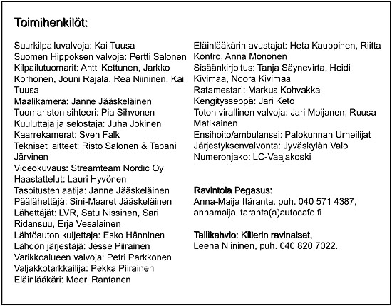 STAR MARTINI: Eteni 1. takasuoralla johtavan rinnalta keulaan, kamppaili tasaisessa maaliintulossa totosijoista, mutta jäi neljänneksi.