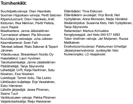 7: 2 Nokeva, 4 Liinan Liekki, 8 Tähti-Tuisku, 9 Lissun Assi, 10 Turtsin Tähti, 12 Rikastuva, 16 Hiidenkirnu (14,15)