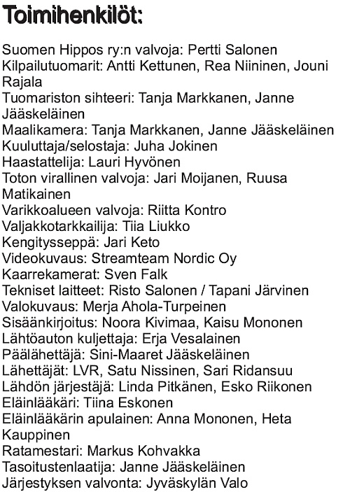 Koelähtö klo 16.50. Nuoret-lähtö klo 17.00. Ponilähdöt klo 17.30 ja 17.45.