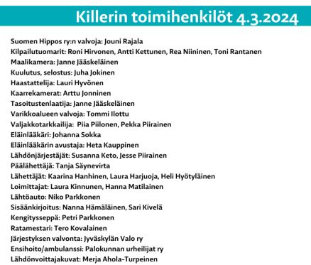 Mukana menossa: Kypärämäen-Köhniön asukasyhdistys, SM-viikko 8.-10.3.2024, Jyväskylän Kuninkuusravit 26-28.7.2024, Kärkkäinen, Hevosklinikka Laukaa.