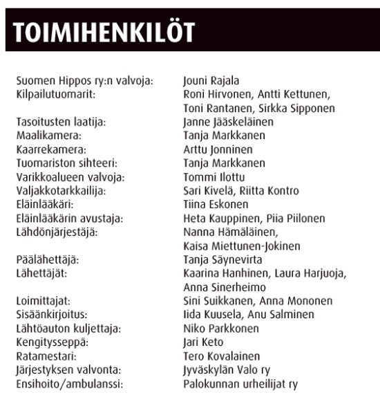 Mukana menossa mm.: Finntack & Yara, O.K. Auto.