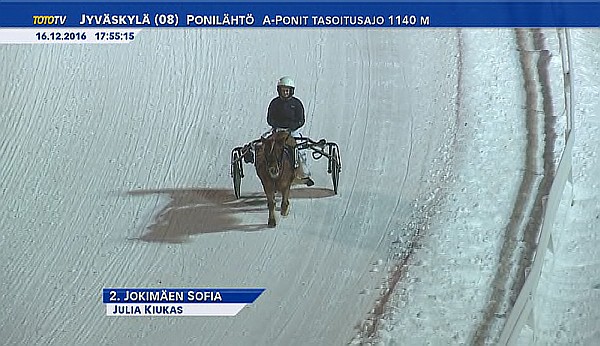 HISSUN HAASTE: Laukkasi 1. kurvissa sisällä porukan keskellä. Jatkoi ns. 4. sisällä kaukana selästä. Kiri maalisuoralla porukan keskeltä asiallisesti rahoille.