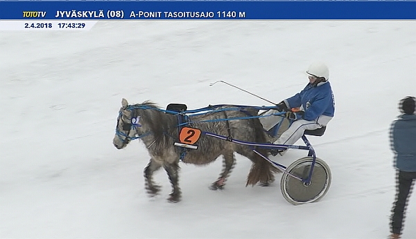 SALLI SORJONEN: Eteni viiden hevosen lähdössä 3. sisälle, mistä seuraili reippaassa lopetuksessa. Peri lopussa kakkosijan vastustajan laukattua hylkäykseen.