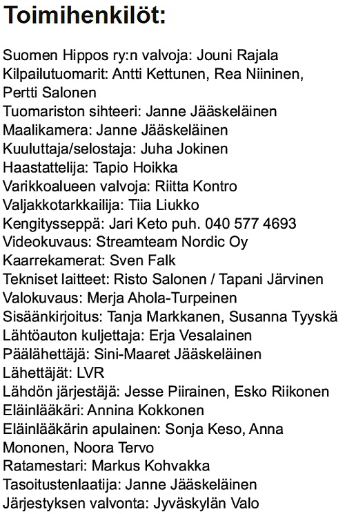 Mukana menossa: Biofarm, Criollo, Veljekset Wahlsten, Tikkurila, Hevari, SHKL.