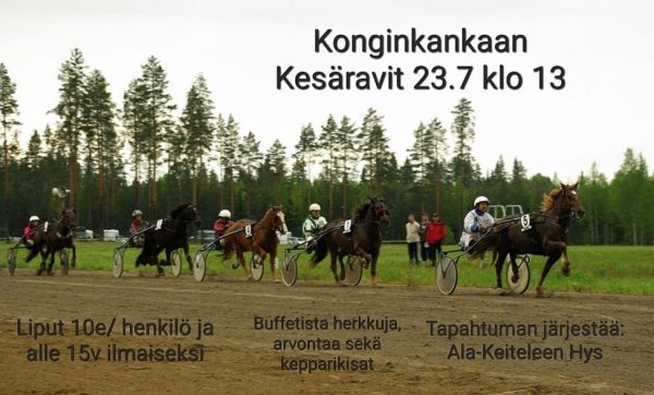 Pian päästään taas nauttimaan vauhdin huumasta kun Konginkankaalla ravataan! Lämpimästi tervetuloa seuraamaan kun hevoset mittelöivät maalaisravitunnelmissa!