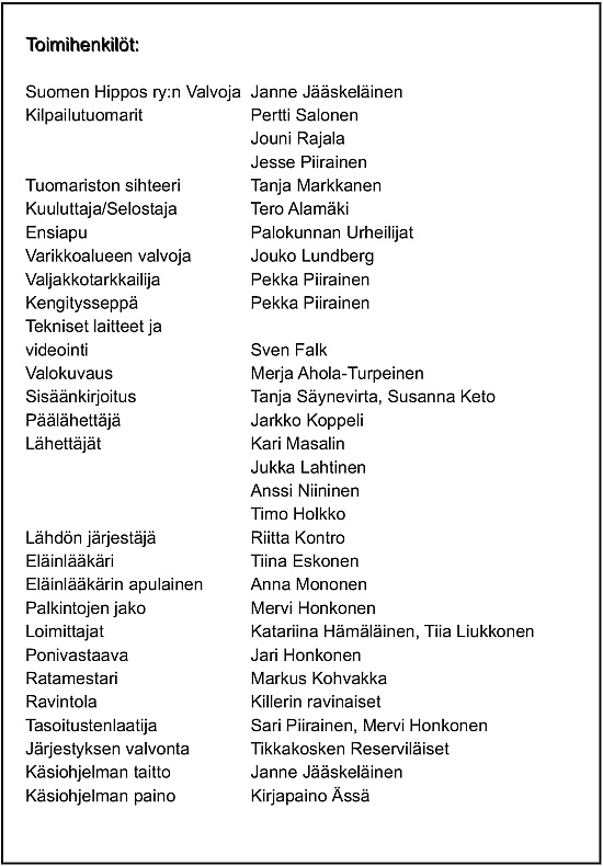 Tapahtuma painottuu varikon puolelle, jossa ponit valmistautuvat kisoihin ja tietysti kaviouralle, jossa käydään itse kilpailut 94 ponin voimin. Luvassa kaksi russponien ja kuusi shetlanninponien lähtöä.