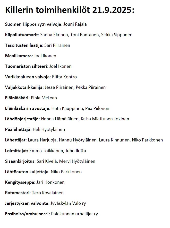 Menossa mukana: Ravitalli Suuronen Oy, Massimo Hoist, Tuhti-Talli, KS Kengitys/Keski-Suomen Hevosenomistajat, Taksi Ritvanen, Turva vakuutusyhtiö, Multimek Oy, Automyynti Rautiainen Oy.