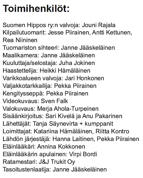 Menossa mukana: K-S Hevosenomistajat, Tähen Toivomus, Uusitalon Hevostila, Keski-Suomen Rakennus ja Raudoitus, Killerin Ravinaiset, Laukaan Hys, Korpilahden Hys, Hankasalmen Hys, Hevari.