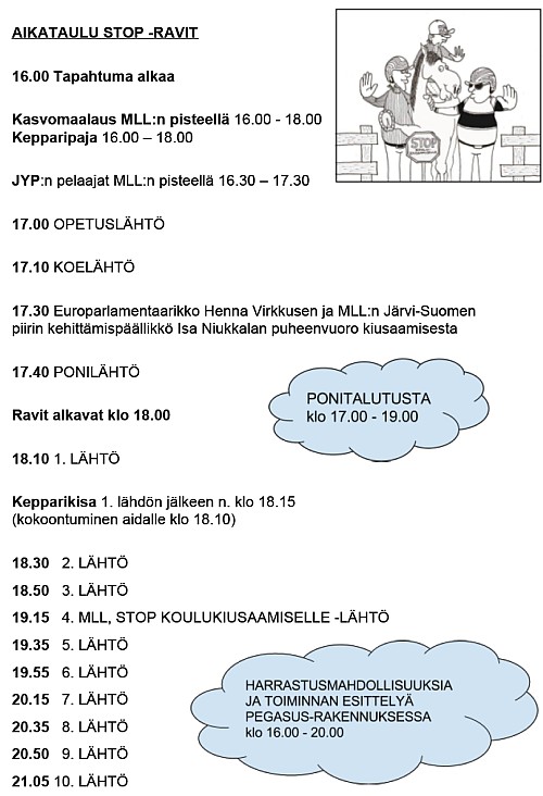 Opetuslähtö klo 17.00. Koelähtö klo 17.10. Ponilähtö klo 17.45.