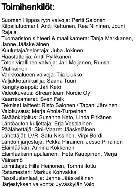 Mukana menossa: Suomenhevosliitto, LähiTapiola, Mannerheimin Lastensuojeluliitto, RTK-Palvelu, Veljekset Laakkonen, 360 Palvelut, Horze, Racing.