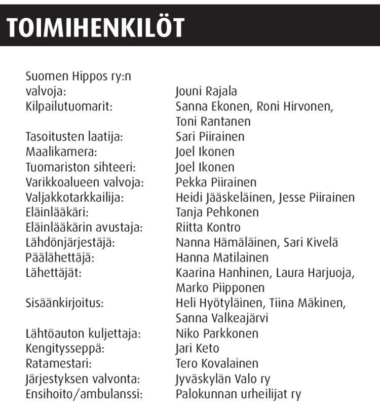 Lähtölistat, poisjäännit ja ohjastajanvaihdokset