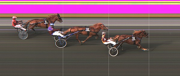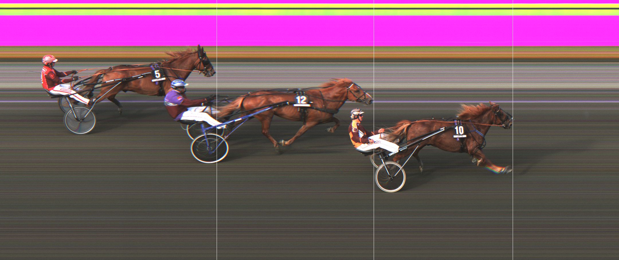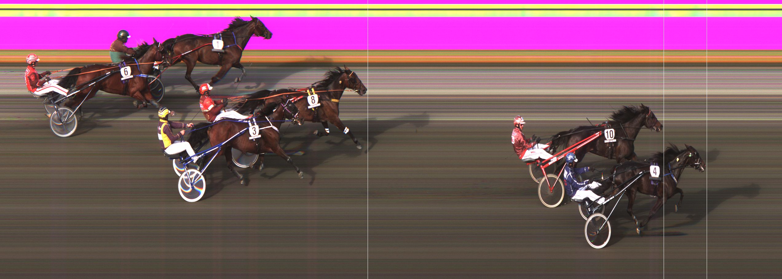 DENNA: Pääsi 1. kurvin lopussa kolmannelta johtavan rinnalle, eteni keulaan 2. kurvin alussa. Kamppaili maalisuoralla totoon.