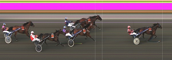 THAT'S A LADY: Laukkasi 1. kurvin alussa takapareissa, eteni 1. takasuoralla vauhdilla kolmatta. Ei päässytkään parijonoon ja pakitti 2. kurvissa hännille, missä seuraili perille kiihtyvässä vauhdissa.
