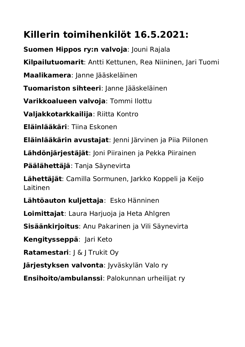 Menossa mukana: Suomenhevosliitto, Hevari, Racing, Hoviruoka, Hevosklinikka Laukaa, Finntack, O.K. Auto.