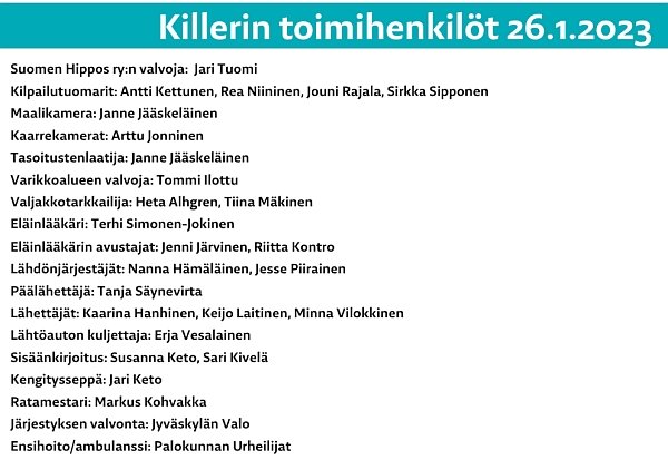 Koelähtö klo 17.20. Ponilähtö klo 17.40.