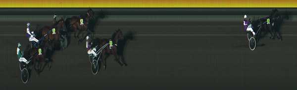HELLO FABIO: Kiersi 1. kurvin neljättä ja eteni 1. takasuoralla johtavan rinnalle. Eteni keulaan etusuoran alkaessa. Jäi maalisuoralla viim. rahoille.