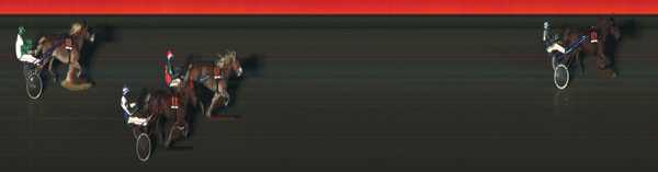 TWINS GLADIATOR: Nousi 3. ulkoa kolmannelle 1100 jäljellä, eteni viim. takasuoralla johtavan rinnalle. Kamppaili maalisuoralla voitosta kolmatta kirineen Low Flyerin kanssa, mille hävisi niukasti.