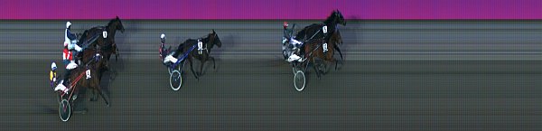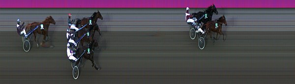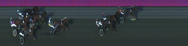 SÄRKÄN KALLE: Jäi 1. takasuoralla johtavan rinnalle, eteni keulaan hurjalla pätkällä viim. takasuoran lopussa ja oli irtoamassa maisemiin, mutta laukkasi samassa jääden harvan porukan toiseksi. Kiri vielä uudelleen johtaneen Savon Kuukuiskaajan rinnalle ja hävisi niukasti.
