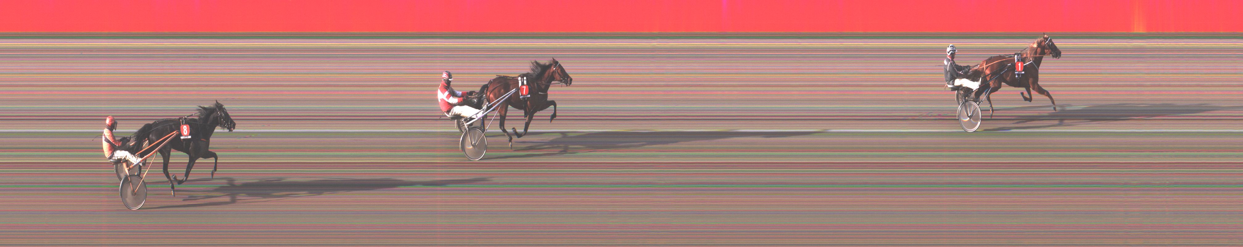 POIKA-RAMIINI: Jäi kolmannelle, laukkasi 1. takasuoralla lyhyesti. Jatkoi edelleen kolmatta kärjen rinnalla ja pääsi johtavan rinnalle vasta maalisuoralle tultaessa. Puristi väkivahvasti maalisuoralla voittoon.