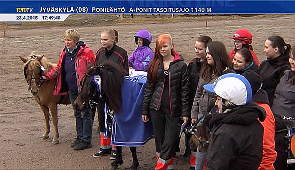 Ponilähdön voittajat onnittelijoiden ympäröimänä... (kuva Tototv:n lähetyksestä, kamera: Hannu Kauhanen)