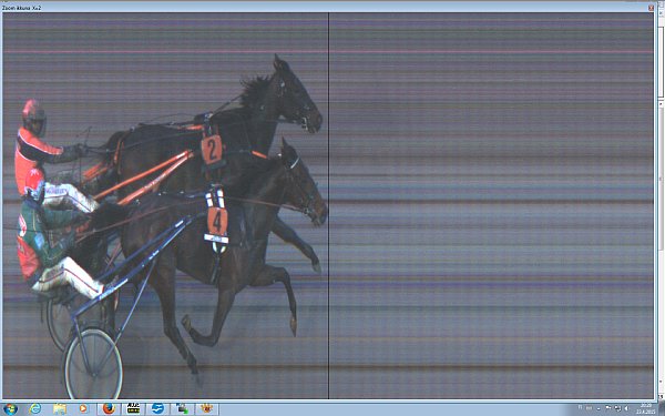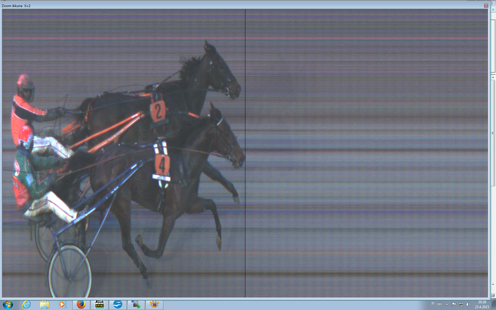 VIEKOVA: Laukkasi lähtösuoralla ja taustalla 2. kurvissa pari kertaa.