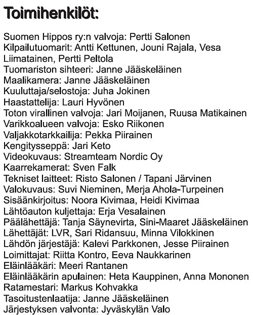 Mukana on ikäluokan kärkinimet Vitter, Säihkeen Säpinä, Vaellus, Taruntuuli jne. Ilta on muutoinkin tasokas, mukana on mm. St Michel finalisti Stormysky, tuore 65-voittaja Haltija jne.