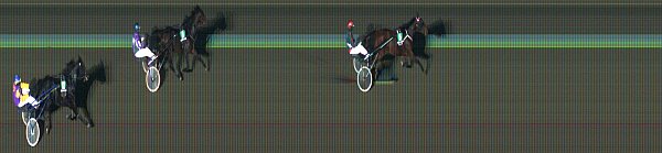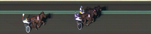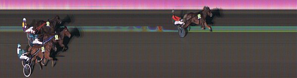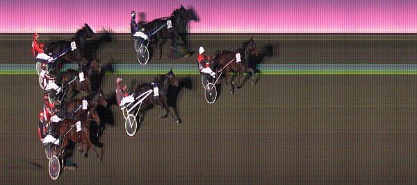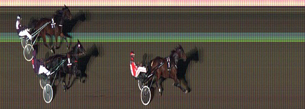 DEVIL'S DREAM: Laukkasi lähtösuoran lopussa ahtaassa välissä ja jäi hännille, nousi kolmannelle 900 jäljellä. Tehtävä oli toivoton ja ruuna jäi lopulta taustalle.