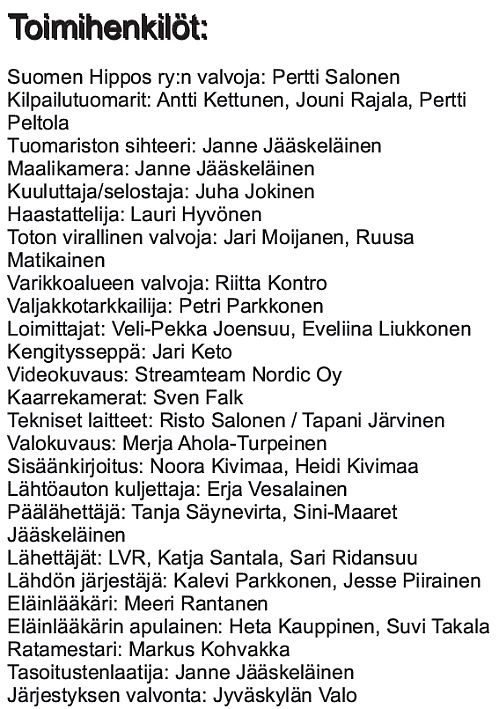 SARIANNAN: Laukkasi 3. sisältä n. 1500 jäljellä jääden taustalle, missä oli viimeinen hyväksytyn juoksun tehnyt.