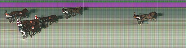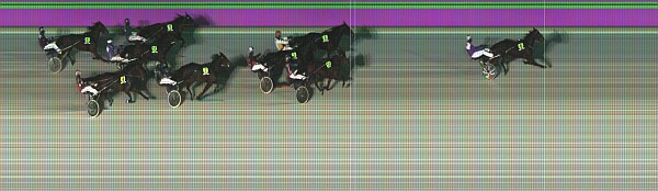 TURTILO: Kiersi lähdöstä kolmatta ja eteni johtaneen laukattua kärkeen 1. takasuoran alussa, mistä laukkasi itse maalisuoran alkaessa mahdollisen kärkisijan.