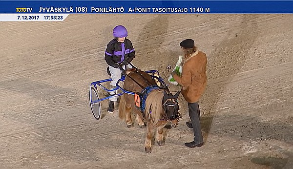 ONNETÖÖRI: Laukkasi johtavan rinnalta 1. kurvin alussa jääden pienen lähdön hännille, nousi viim. takasuoran alussa kolmannelle. Eteni hyvin, mutta laukkasi 350 jäljellä uudelleen ja kolmannen kerran taustalla maalisuoran alussa.