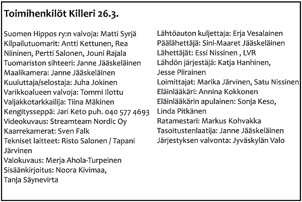 Koelähtö klo 16.55. Ponilähtö klo 17.10. Toimihenkilöt tässä.